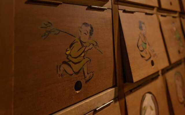 大広間の入口の下駄箱にも一つ一つ絵が描かれています。