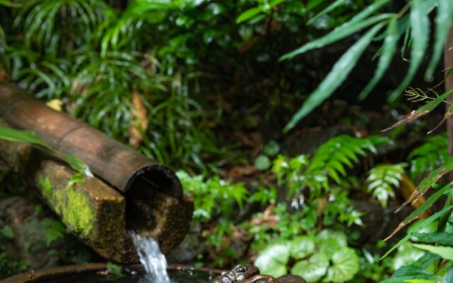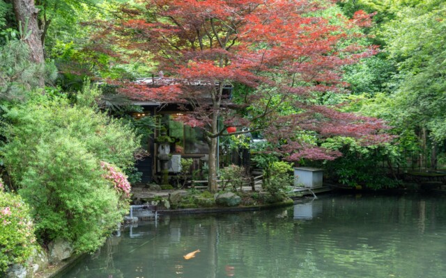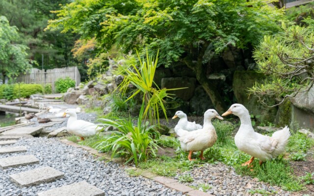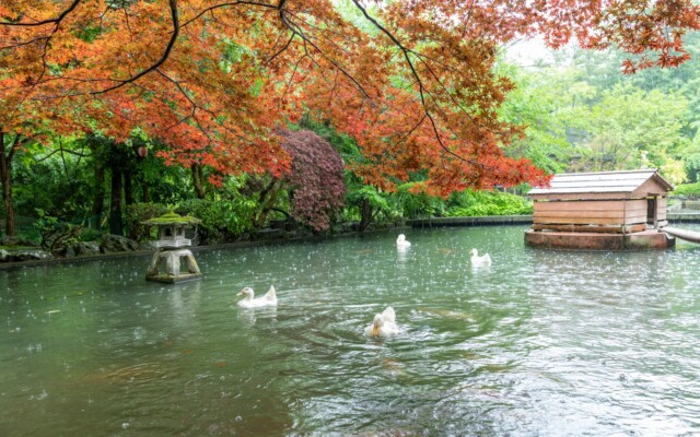 庭園には「河童の池」という池があります。なんとそこには、鯉だけでなく、アヒルも一緒に生活しています!