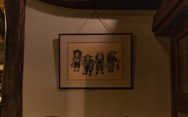 【山の神】1階の部屋の一番奥には作家さんが描いた大きな絵が飾られています。