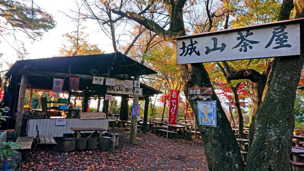 一丁平からさらに30分。茶屋があり、なめこ汁を味わいながら相模湖方面の絶景と紅葉を楽しめます。