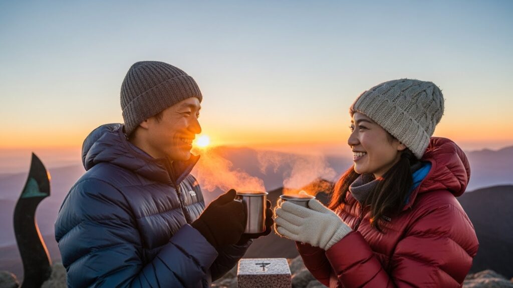 - 温かい飲み物: サーモス等の保温ボトルに入れて持参(山上の自販機は売り切れがち)。