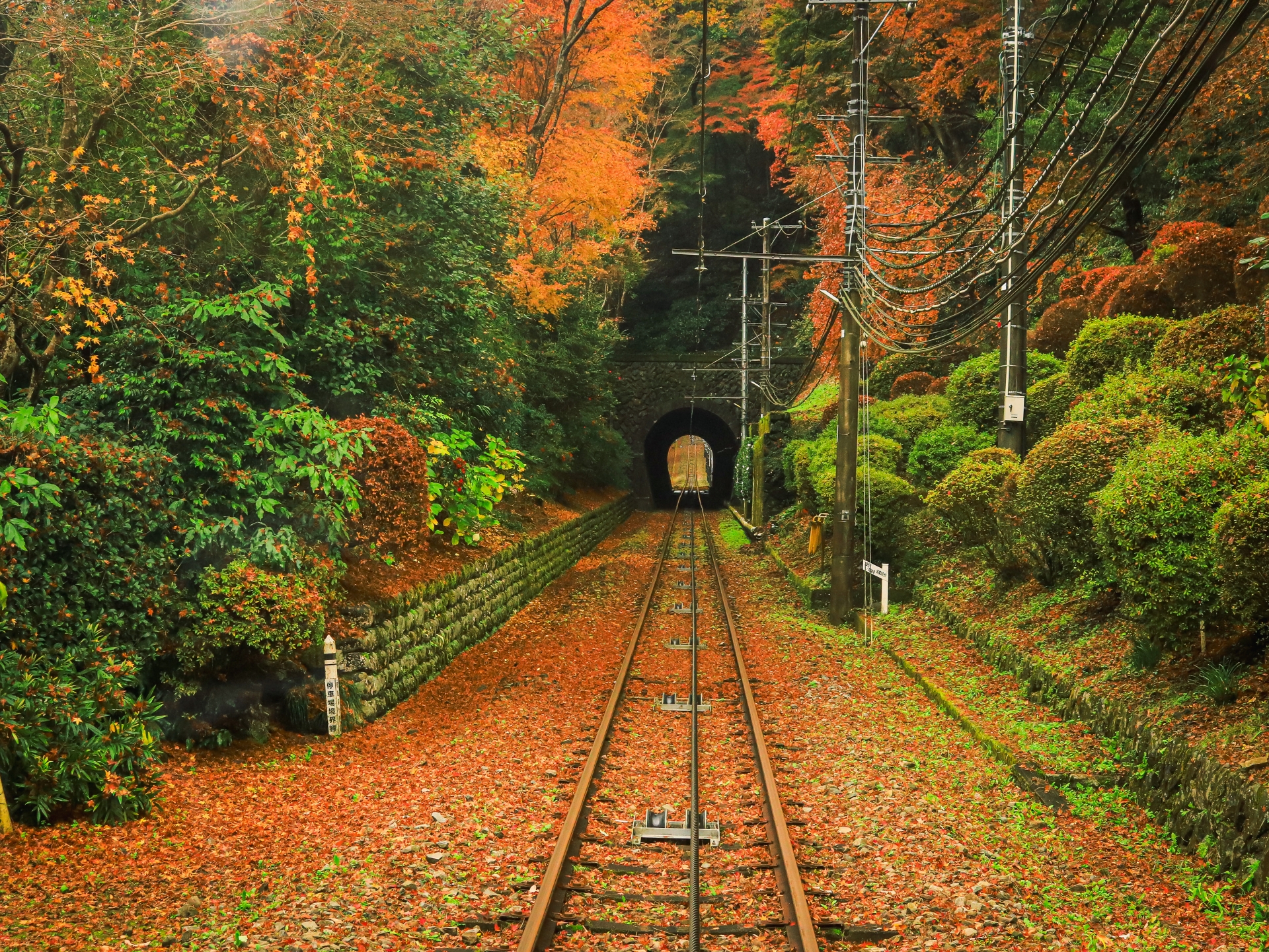 ケーブルカー沿線11月中旬~下旬「紅葉のトンネル」の中を進むような体験ができる。
