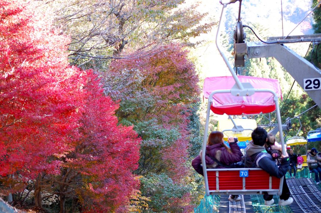 急勾配を登るケーブルカーの車窓から見る、燃えるような紅葉は圧巻です。