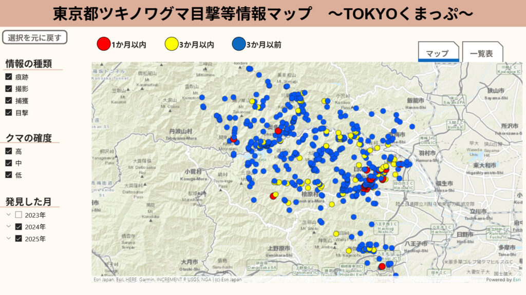 公式サイト:東京都ツキノワグマ目撃等情報マップ ~TOKYOくまっぷ~